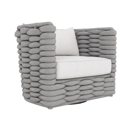 Our Melbourne Collection is cozy and as soft as your favorite knit sweater. Supported by all-weather, rustproof aluminum frames, the pieces of this gorgeous collection are expertly wrapped in plush poly-blend fabric, padded and woven to create a stunning textural effect. Slim, low-profile silhouettes easily complement any indoor or outdoor seating arrangement. Seat cushions are covered in beautifully durable InsideOut Performance Fabric Swivel mechanism allows for easy, effortless rotation. Craftsman-built frames made from all-weather aluminum are wrapped in plush woven poly-blend fabric, creating a soft and cozy look. Outdoor cushions made in Mexico are mold- and mildew resistant; sustained by an outdoor elastic support system for added resiliency.