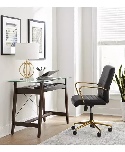 Mimicking 1920s Parisian club chairs, our Alex Collection features high-backed silhouettes fitted with luxuriously plush upholstery. This relaxing, rolling desk chair showcases your choice of rich Italian leather or soft, durable, and easy-clean performance fabrics; both are designer-inspired and expertly tailored to add softness and richness to your work space. Craftsman-built frames house pneumatic, gas lift cylinder mechanisms, which allow you to tilt and swivel to your ideal seating position. And, lumbar pillows along with heavy-duty elastic webbing, dense eco-friendly foam and an abundance of poly-fiber, feathers, and down provide the support needed to rest and work for hours.