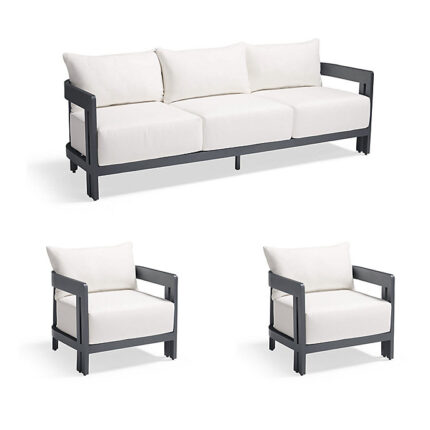 Seat cushions and backrests contain dense foam made from partially plant-based material, padded with poly fibers.