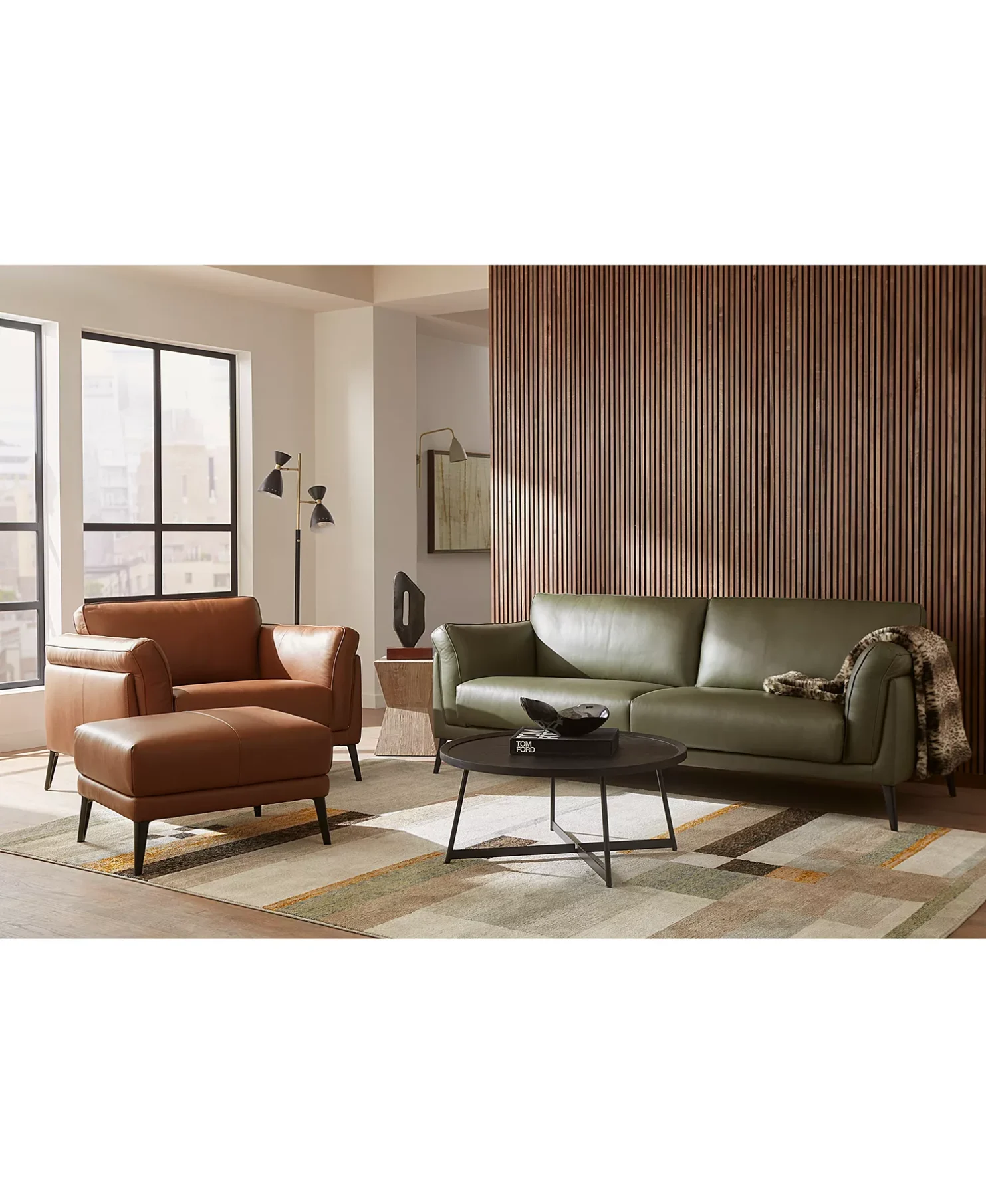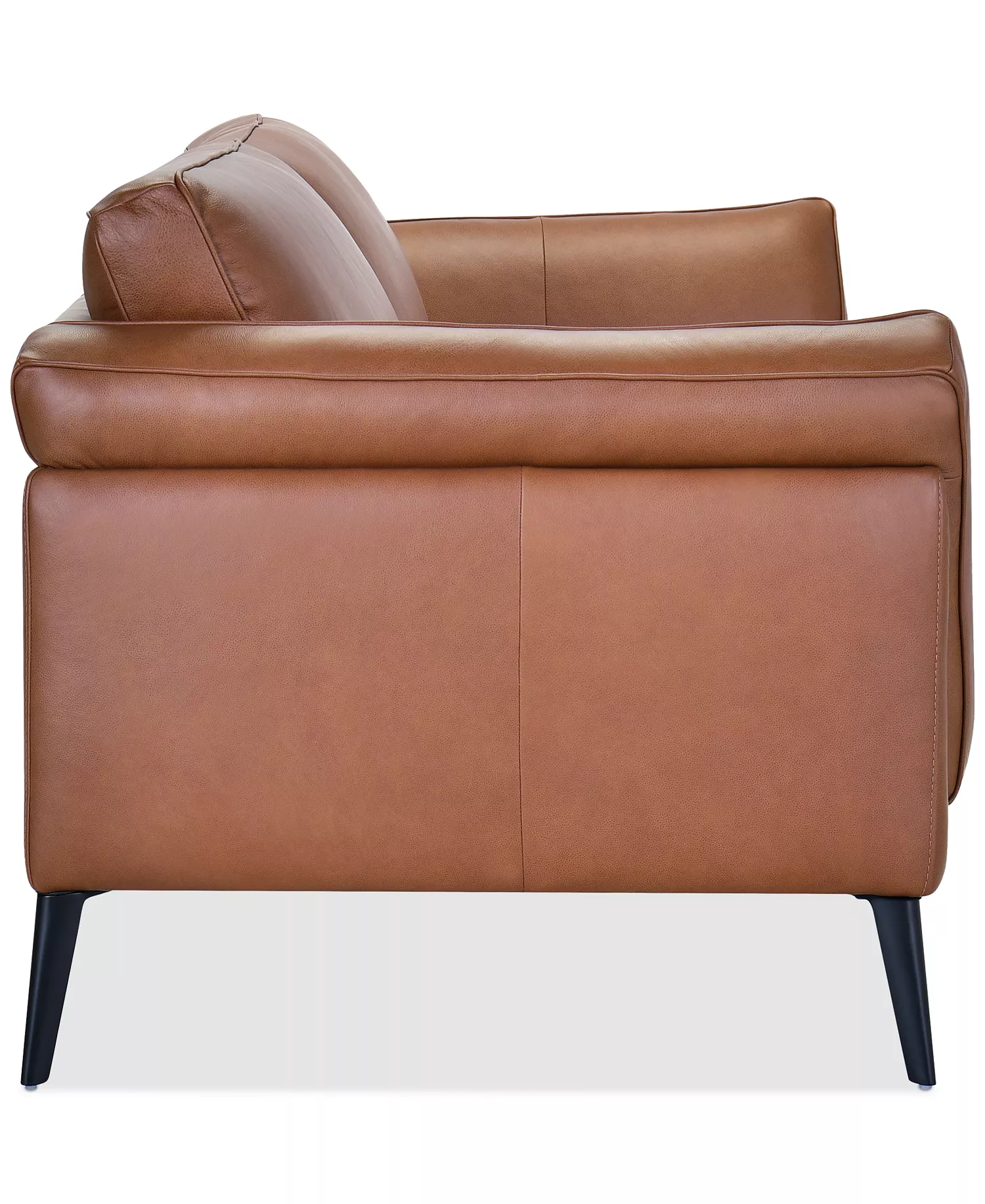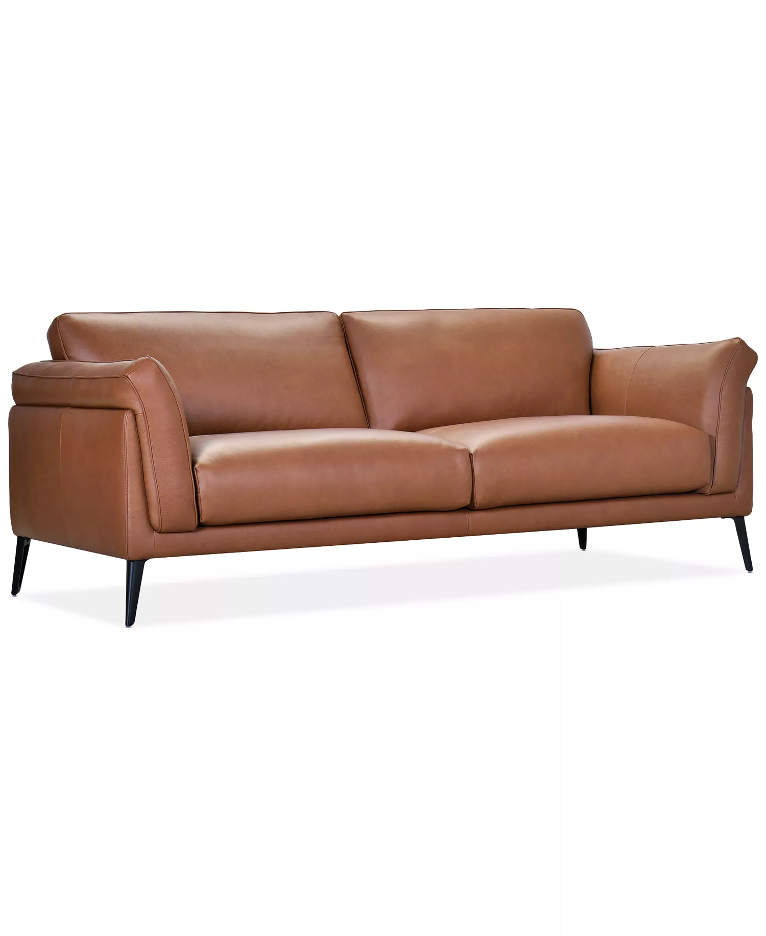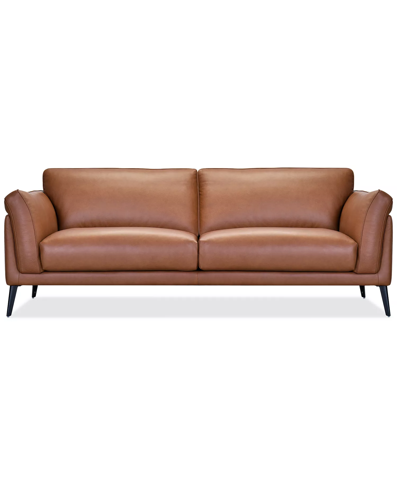 Sleek and modern, the Keery Leather Sofa Collection is covered in luxurious leather upholstery that instantly elevates any space. Its mid-century modern lines, accentuated by splayed legs, present an alluring look that is matched by the supportive feel of its plush, dense foam-filled cushions.