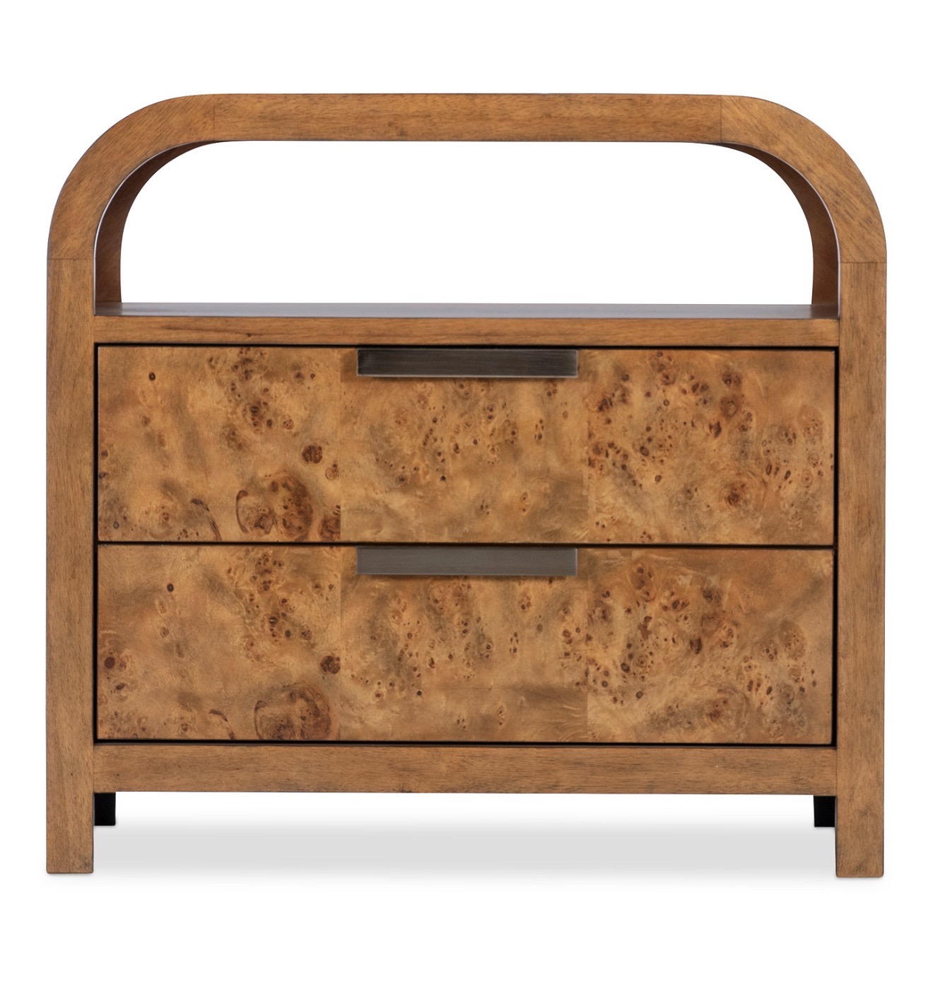 - Nightstand offers versatile storage with two drawers, an open shelf, and a built-in USB port for convenience