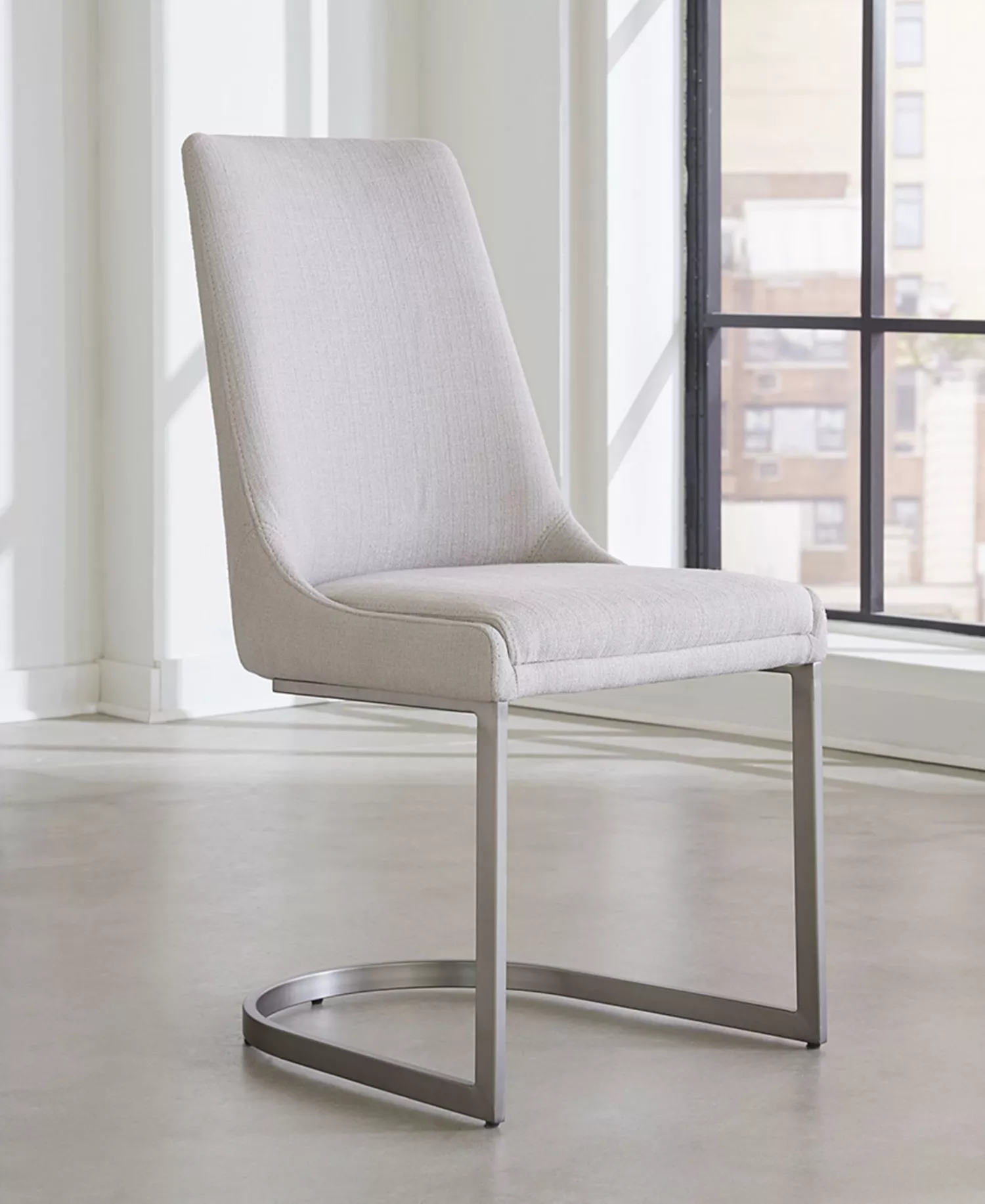 - Dining chair mounted on weighted stainless steel base for firm support