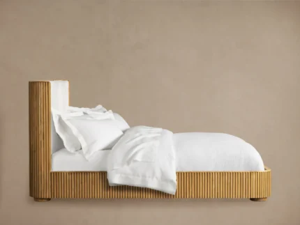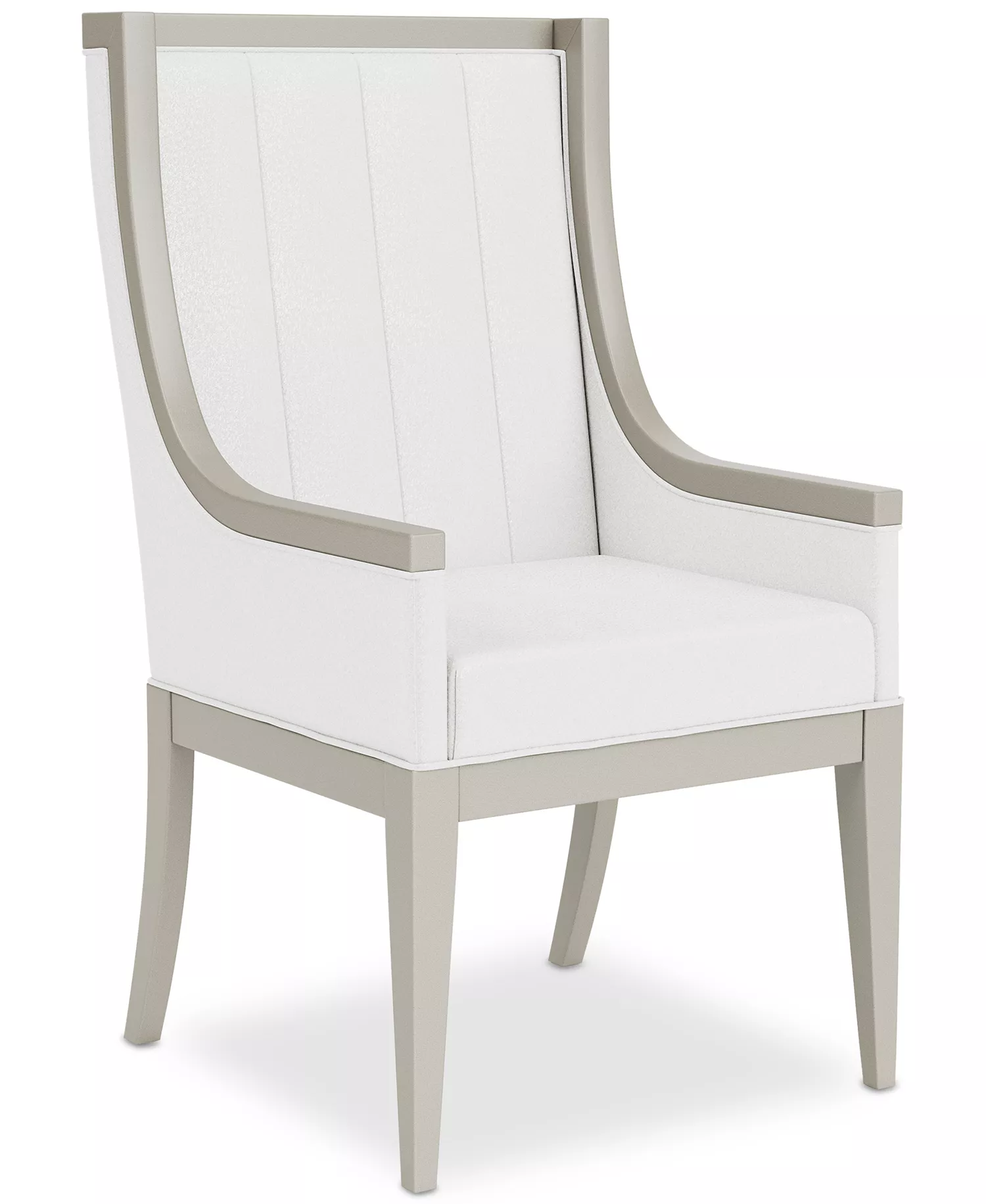 - Plush vertical channeled back host chairs with tapered front legs and a faux metal trim.
