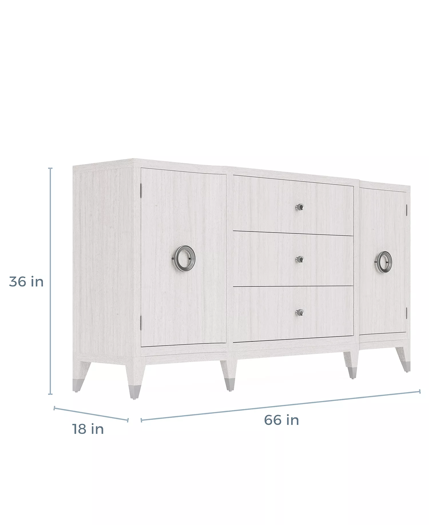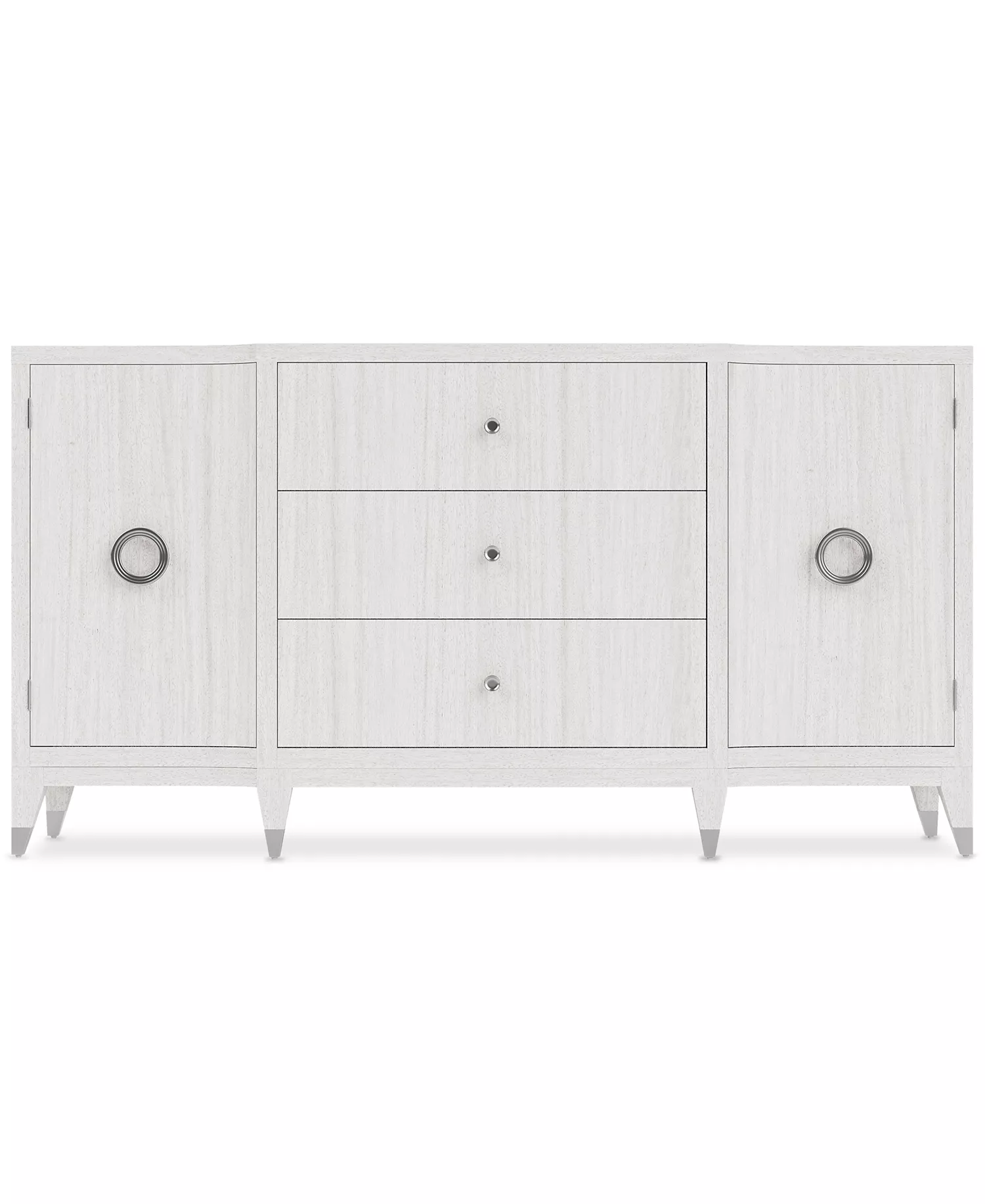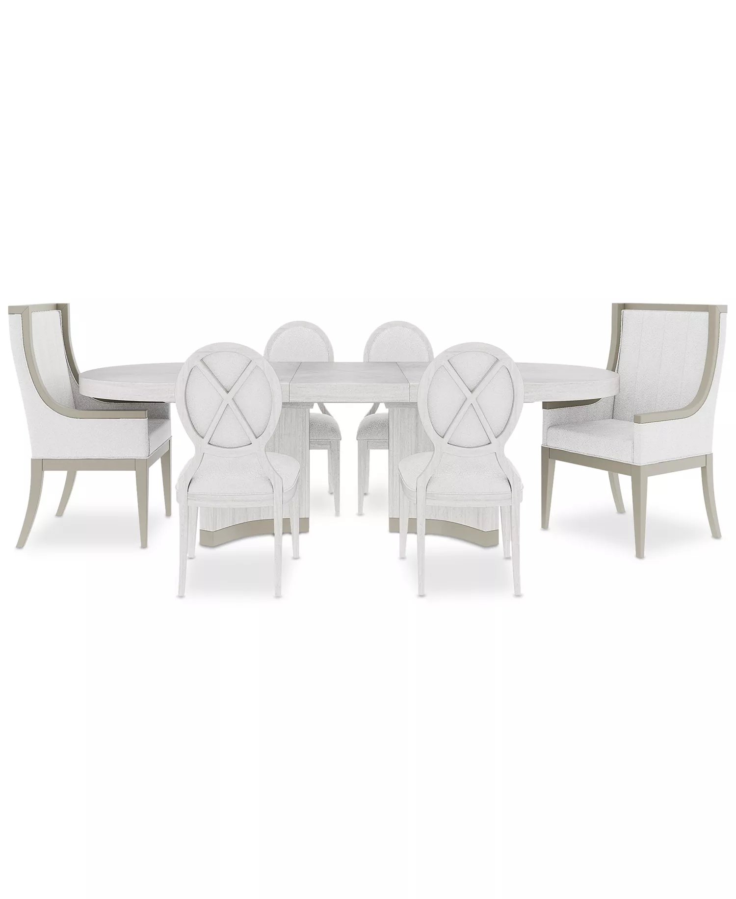 Softened lines and polished forms highlight a timeless look of elegance. Scalloped detailing and platinum finished hardware add a luxurious touch for an air of livable sophistication. The Warlington 8 Pc. Dining Set is the perfect look to elevate your home to the envy of all your friends.